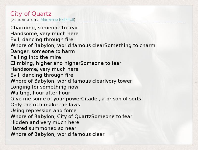 Whore of Babylon, City of QuartzSomeone to fear