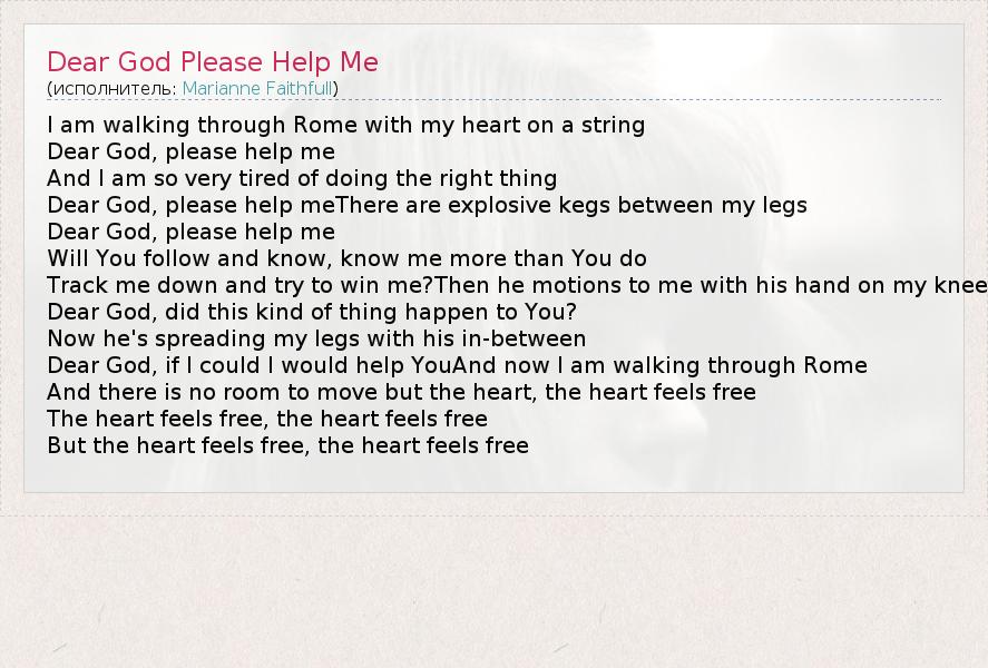 А как ты думаешь, о чем песня "Dear God Please Help Me" ?