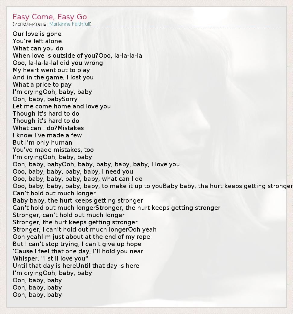 А как ты думаешь, о чем песня "Easy Come, Easy Go" ?