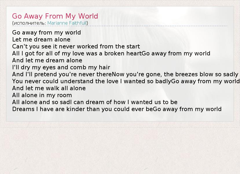 А как ты думаешь, о чем песня "Go Away From My World" ?