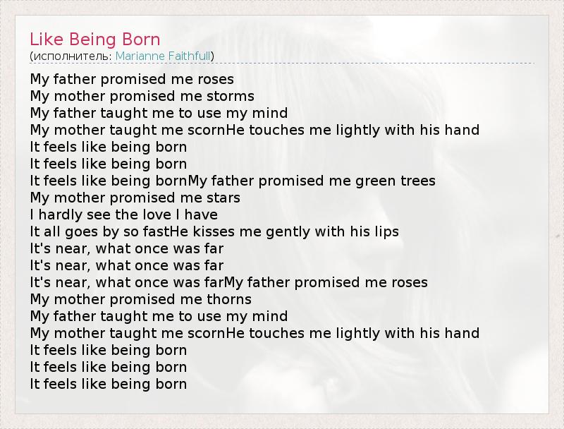 А как ты думаешь, о чем песня "Like Being Born" ?