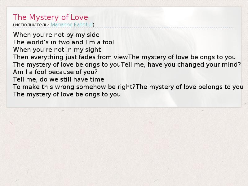 А как ты думаешь, о чем песня "The Mystery of Love" ?