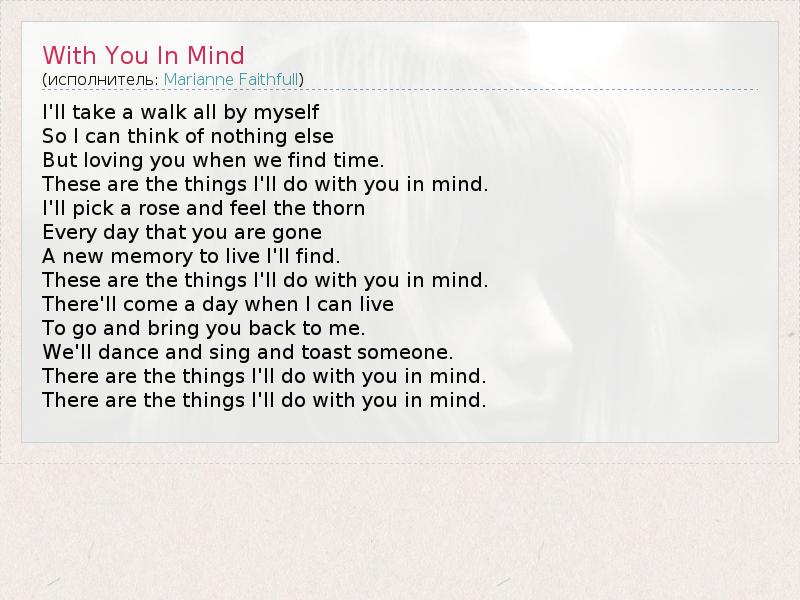 А как ты думаешь, о чем песня "With You In Mind" ?