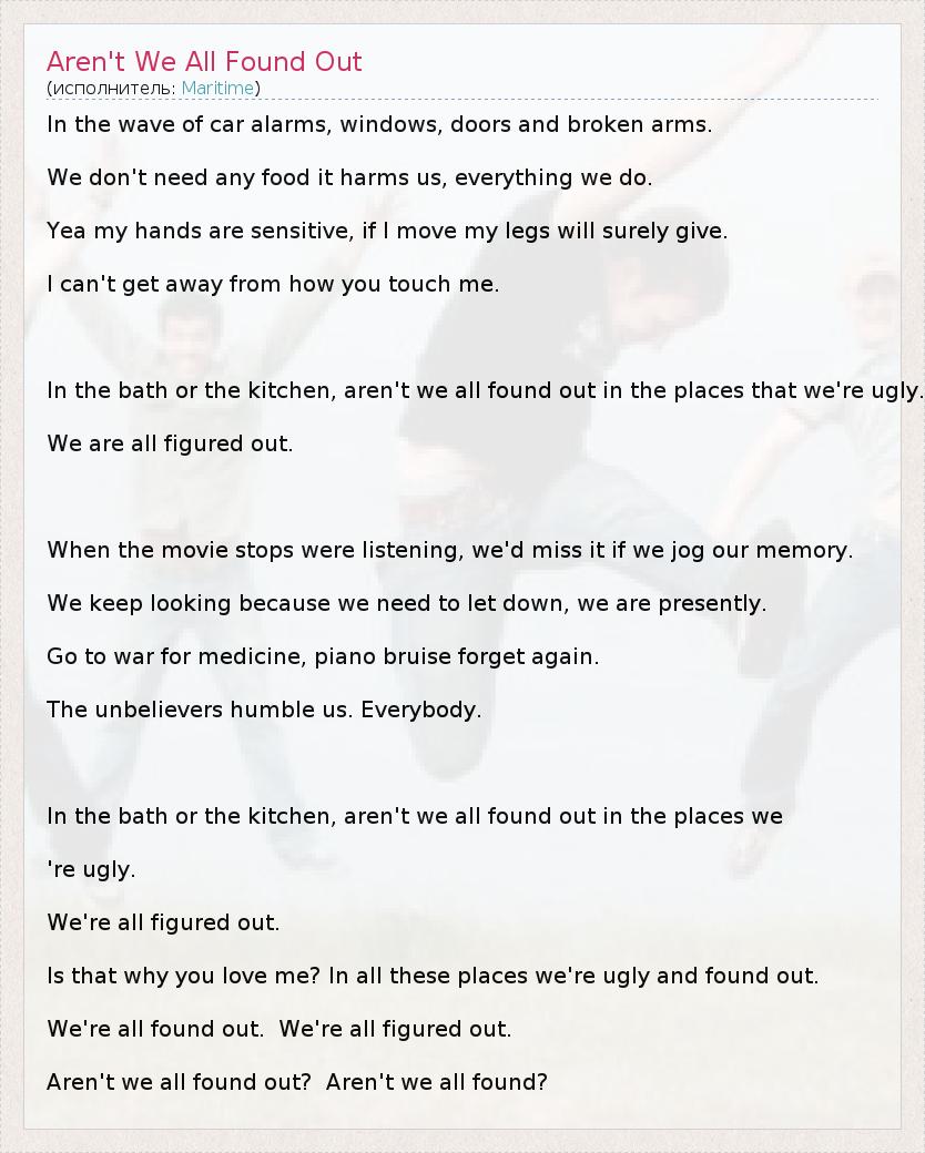 А как ты думаешь, о чем песня "Aren't We All Found Out" ?