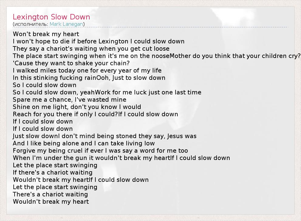 А как ты думаешь, о чем песня "Lexington Slow Down" ?