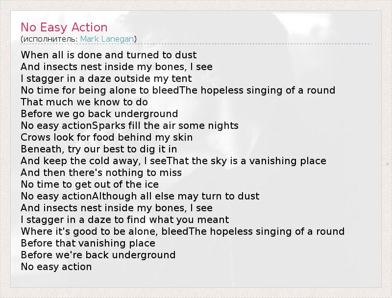 А как ты думаешь, о чем песня "No Easy Action" ?