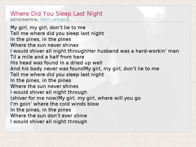 ГлавнаяИсполнителиMark LaneganWhere Did You Sleep Last Night