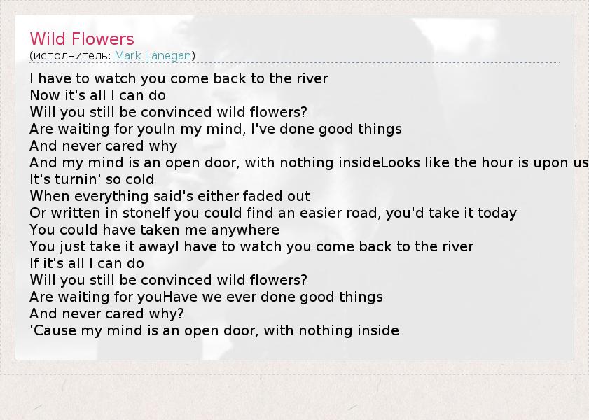 А как ты думаешь, о чем песня "Wild Flowers" ?