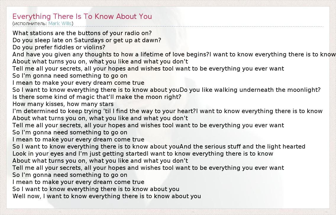 А как ты думаешь, о чем песня "Everything There Is To Know About You" ?