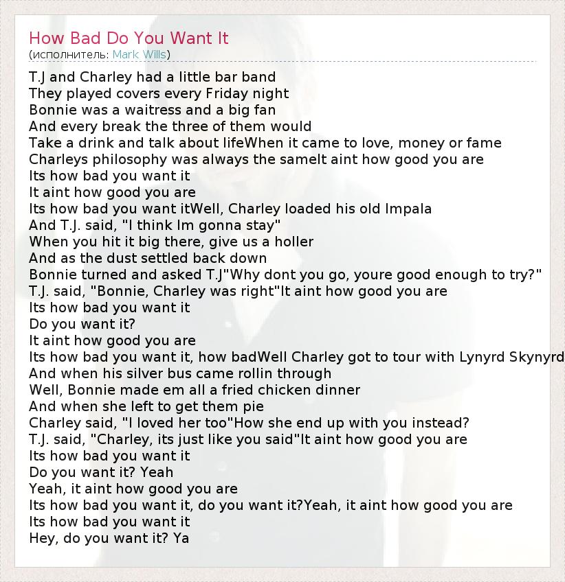 ГлавнаяИсполнителиMark WillsHow Bad Do You Want It