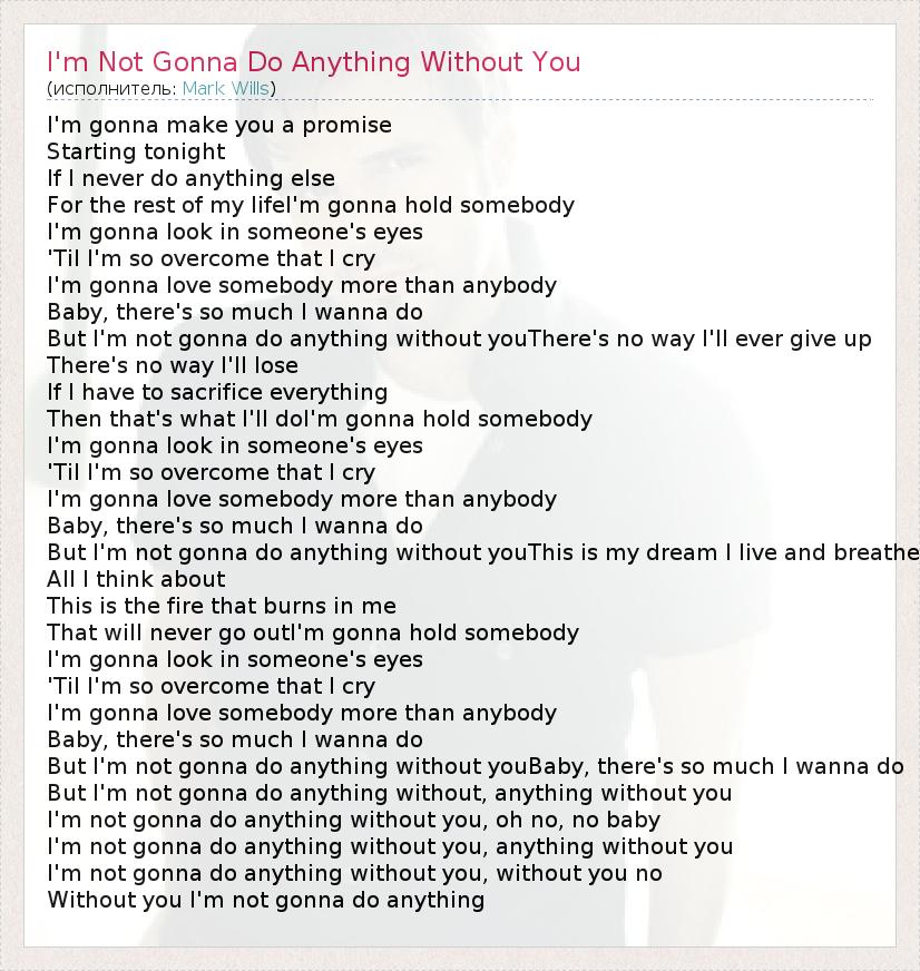 ГлавнаяИсполнителиMark WillsI'm Not Gonna Do Anything Without You