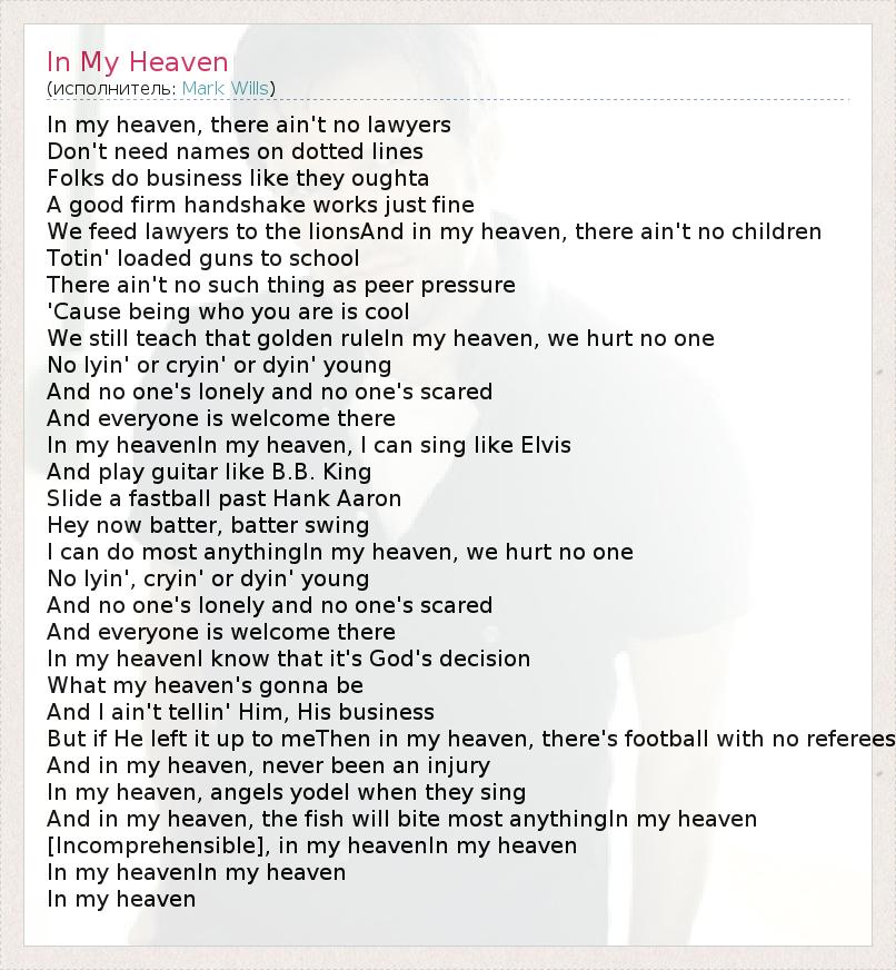 А как ты думаешь, о чем песня "In My Heaven" ?