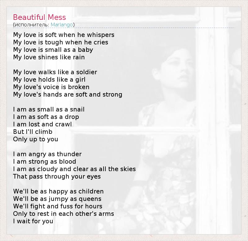 А как ты думаешь, о чем песня "Beautiful Mess" ?