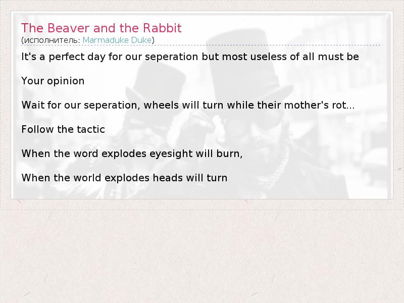 А как ты думаешь, о чем песня "The Beaver and the Rabbit" ?