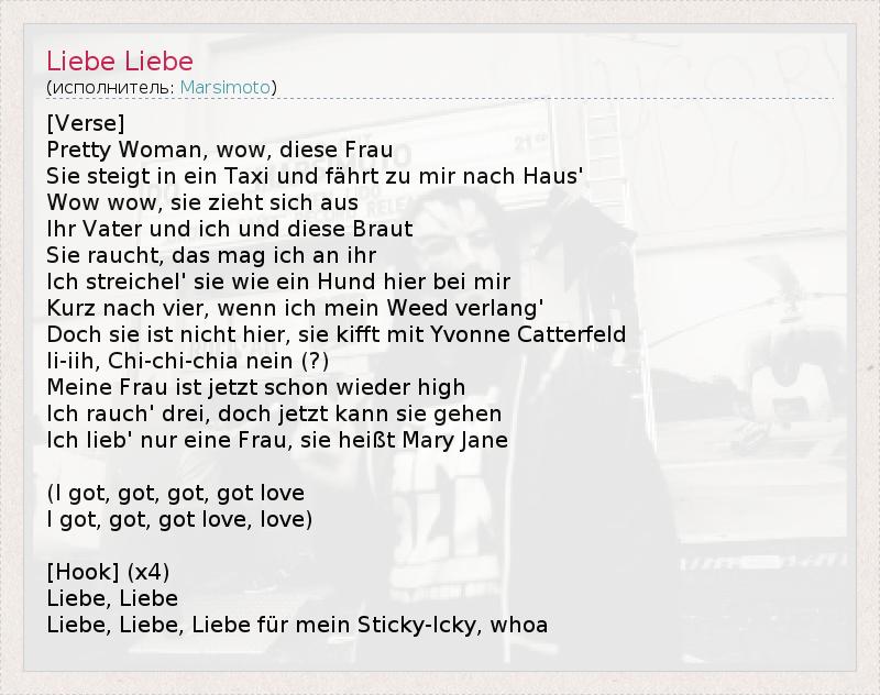 Liebe, Liebe, Liebe für mein Sticky-Icky, whoa