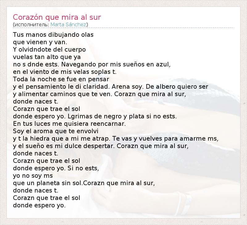 А как ты думаешь, о чем песня "Corazón que mira al sur" ?