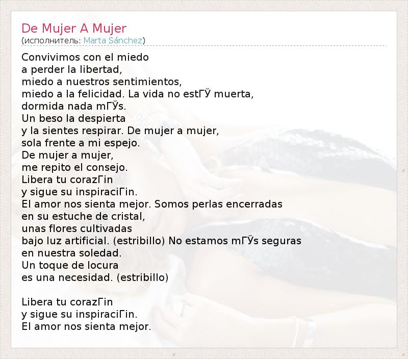А как ты думаешь, о чем песня "De Mujer A Mujer" ?