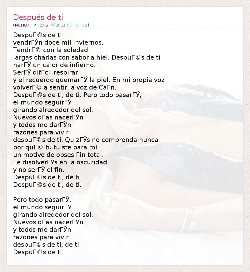 despuГ©s de ti. QuizГЎs no comprenda nunca