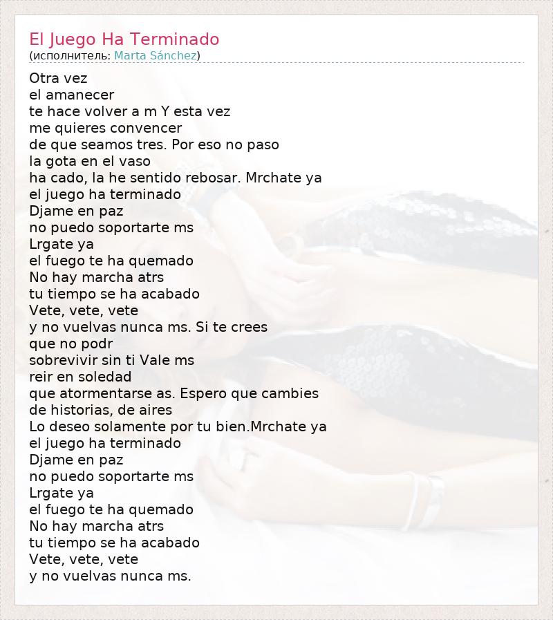 А как ты думаешь, о чем песня "El Juego Ha Terminado" ?
