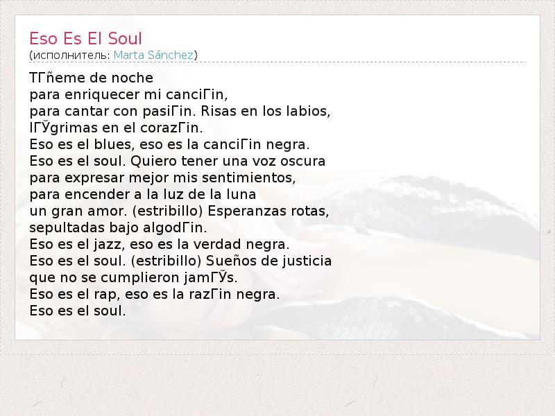 А как ты думаешь, о чем песня "Eso Es El Soul" ?