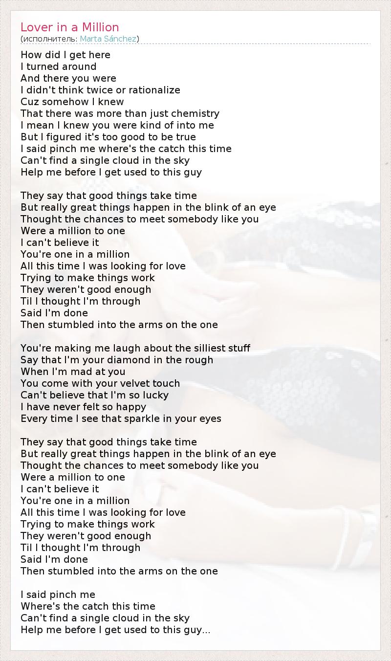 А как ты думаешь, о чем песня "Lover in a Million" ?