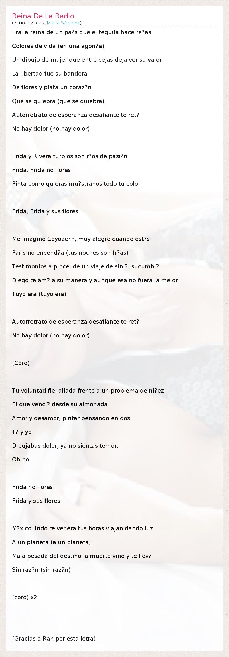 А как ты думаешь, о чем песня "Reina De La Radio" ?
