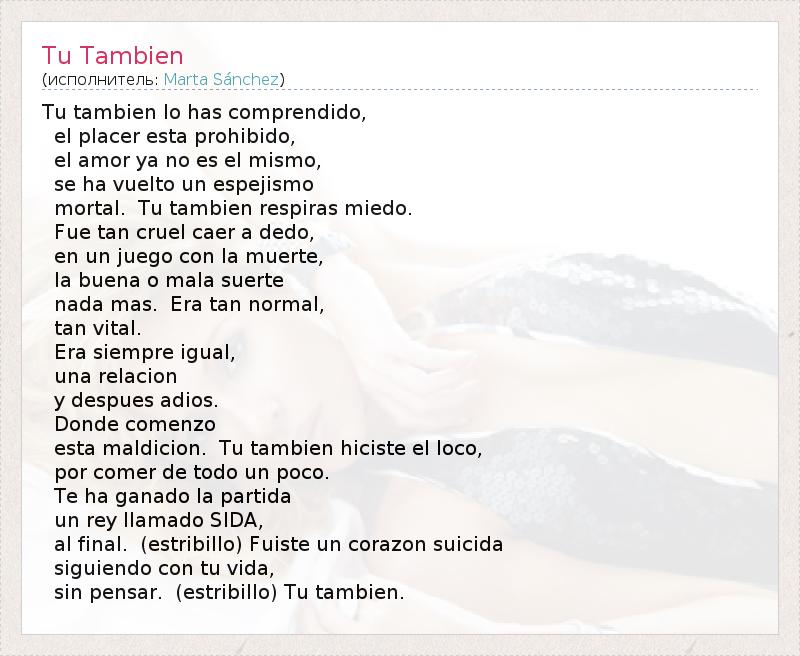 А как ты думаешь, о чем песня "Tu Tambien" ?