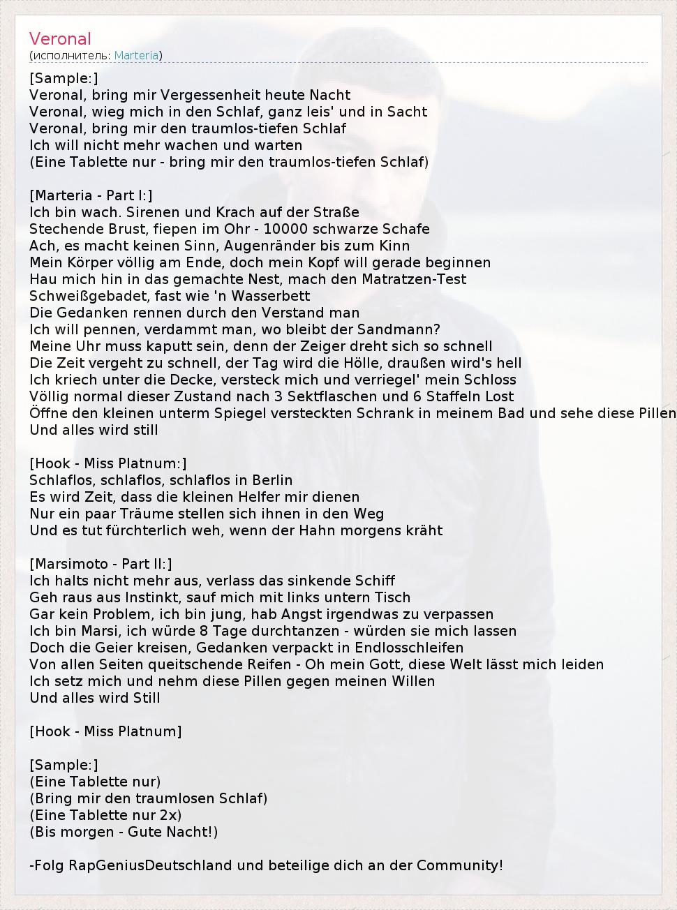 Veronal, wieg mich in den Schlaf, ganz leis' und in Sacht