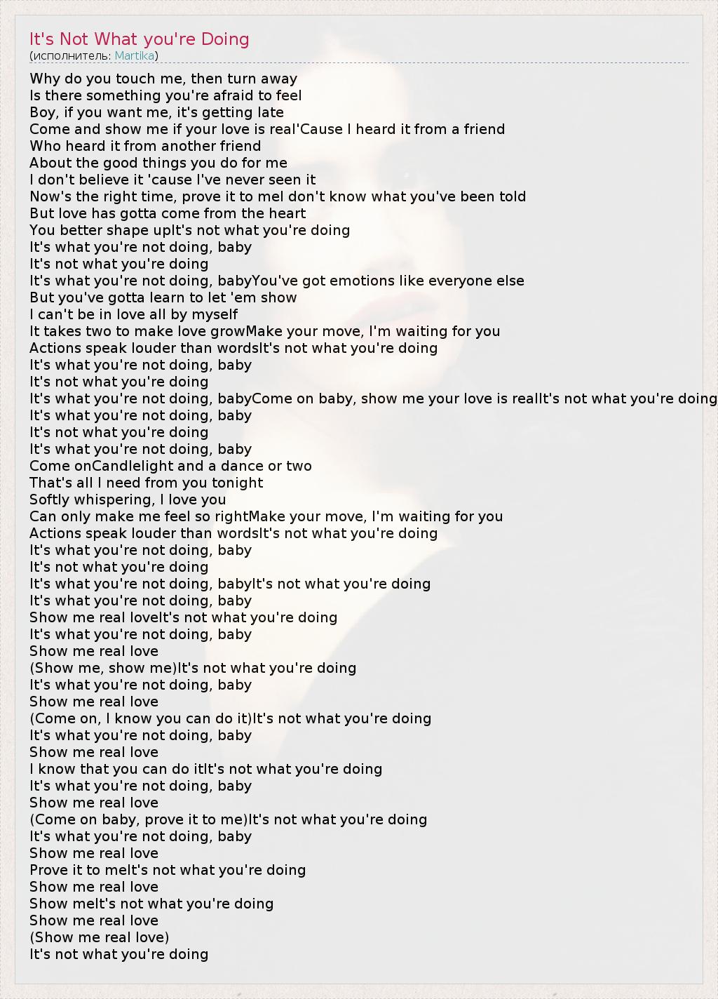 It's what you're not doing, babyCome on baby, show me your love is realIt's not what you're doing