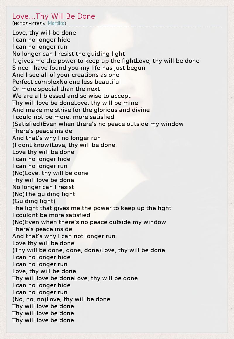 А как ты думаешь, о чем песня "Love...Thy Will Be Done" ?
