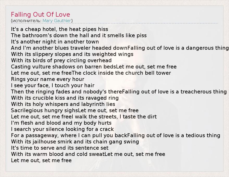 А как ты думаешь, о чем песня "Falling Out Of Love" ?