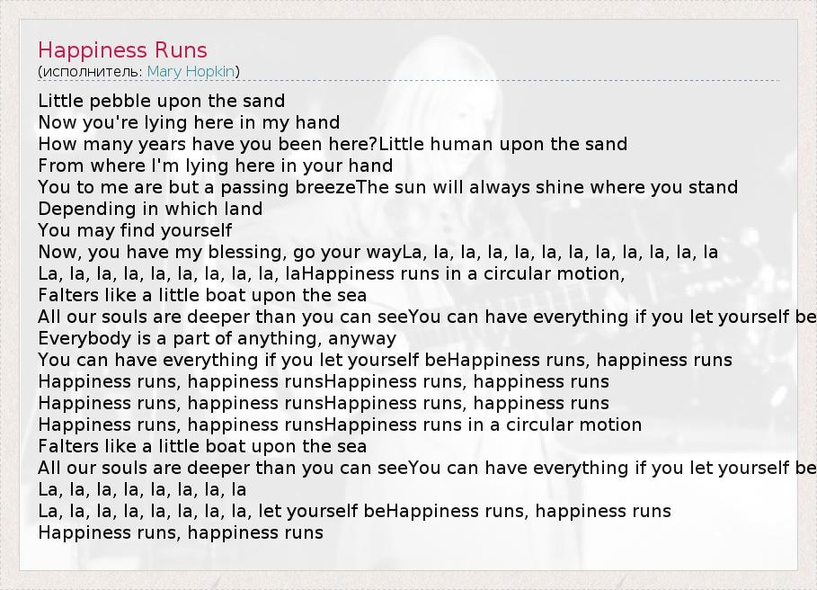 А как ты думаешь, о чем песня "Happiness Runs" ?