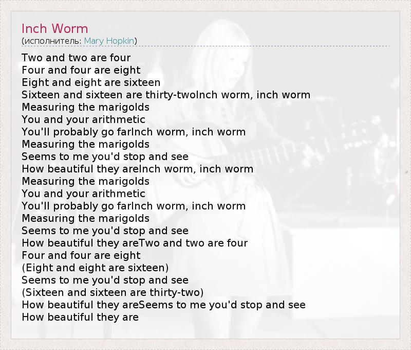 А как ты думаешь, о чем песня "Inch Worm" ?