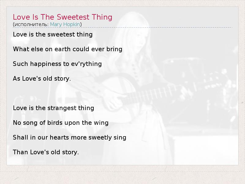 А как ты думаешь, о чем песня "Love Is The Sweetest Thing" ?