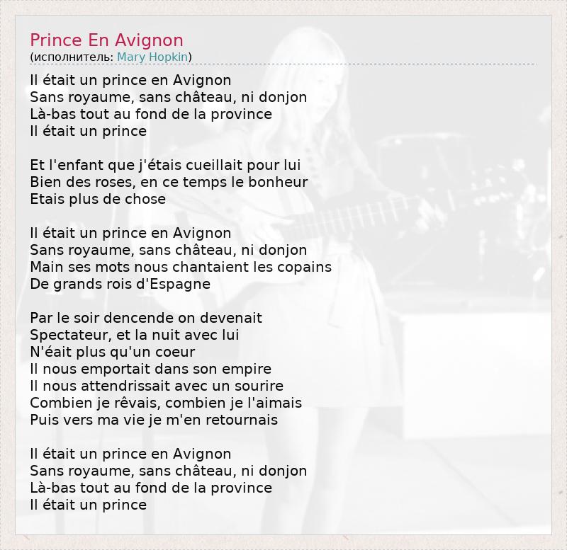 А как ты думаешь, о чем песня "Prince En Avignon" ?