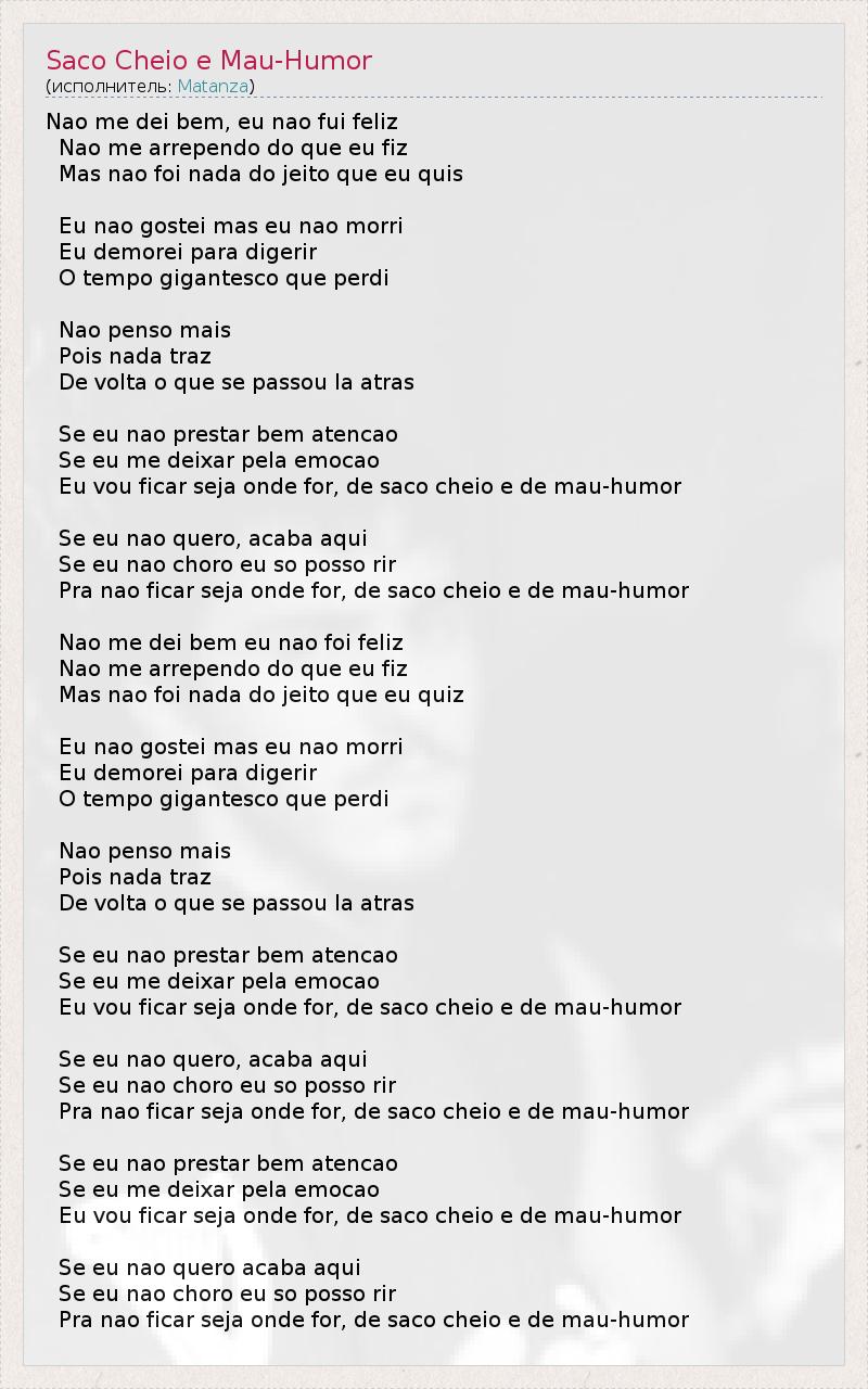 А как ты думаешь, о чем песня "Saco Cheio e Mau-Humor" ?