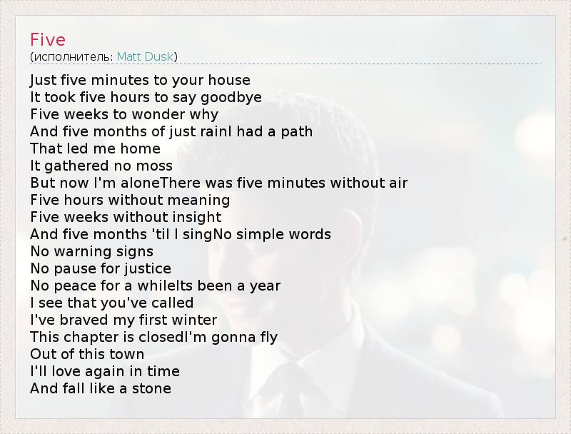 А как ты думаешь, о чем песня "Five" ?