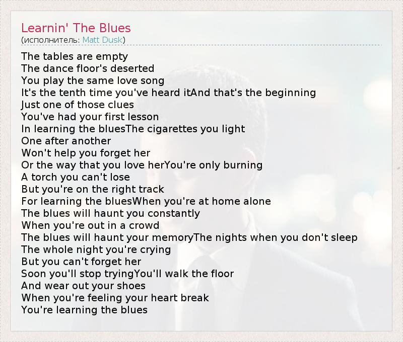 А как ты думаешь, о чем песня "Learnin' The Blues" ?