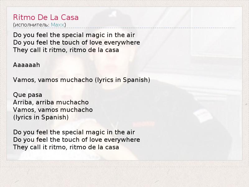 А как ты думаешь, о чем песня "Ritmo De La Casa" ?