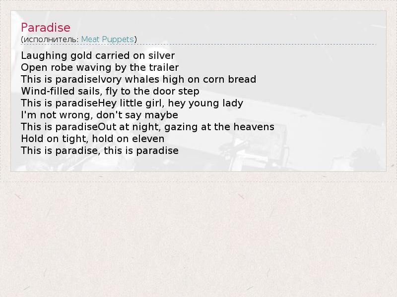 А как ты думаешь, о чем песня "Paradise" ?