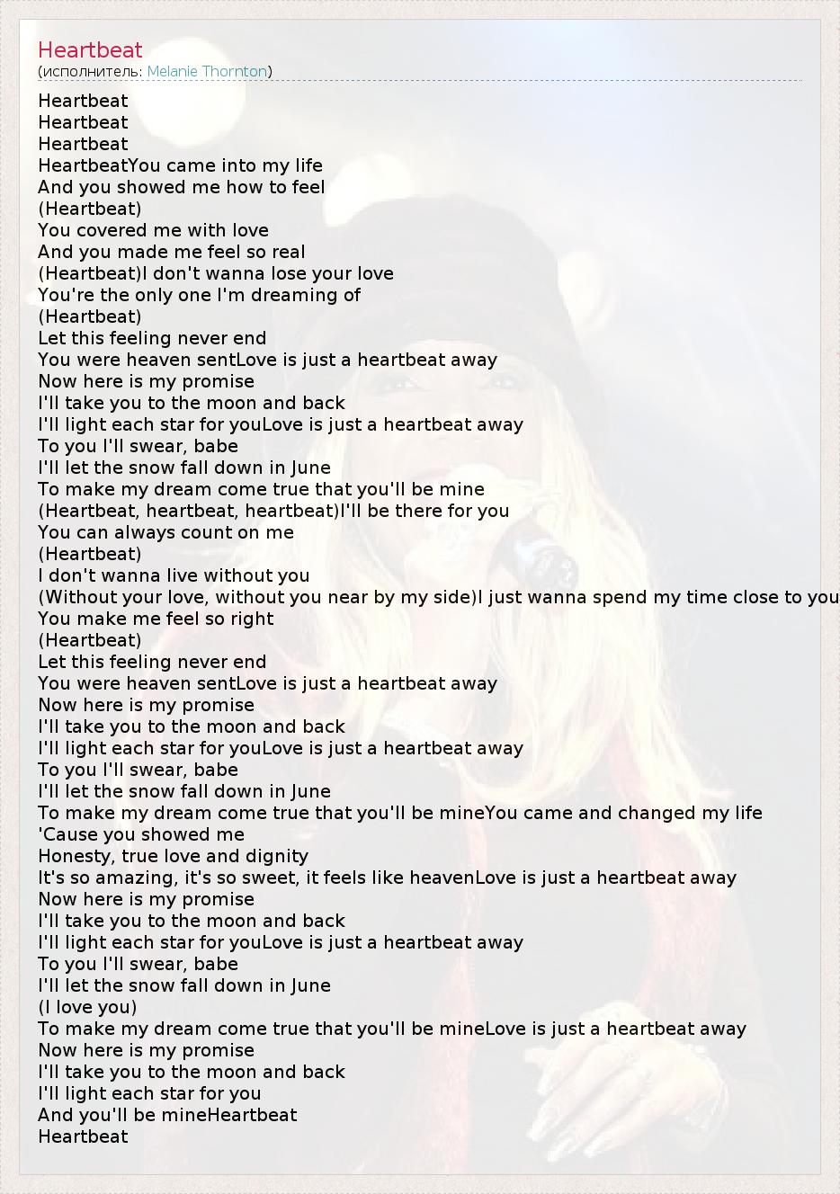 А как ты думаешь, о чем песня "Heartbeat" ?