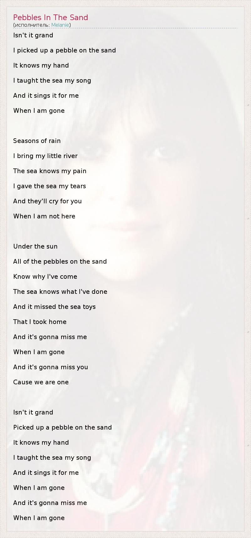 А как ты думаешь, о чем песня "Pebbles In The Sand" ?