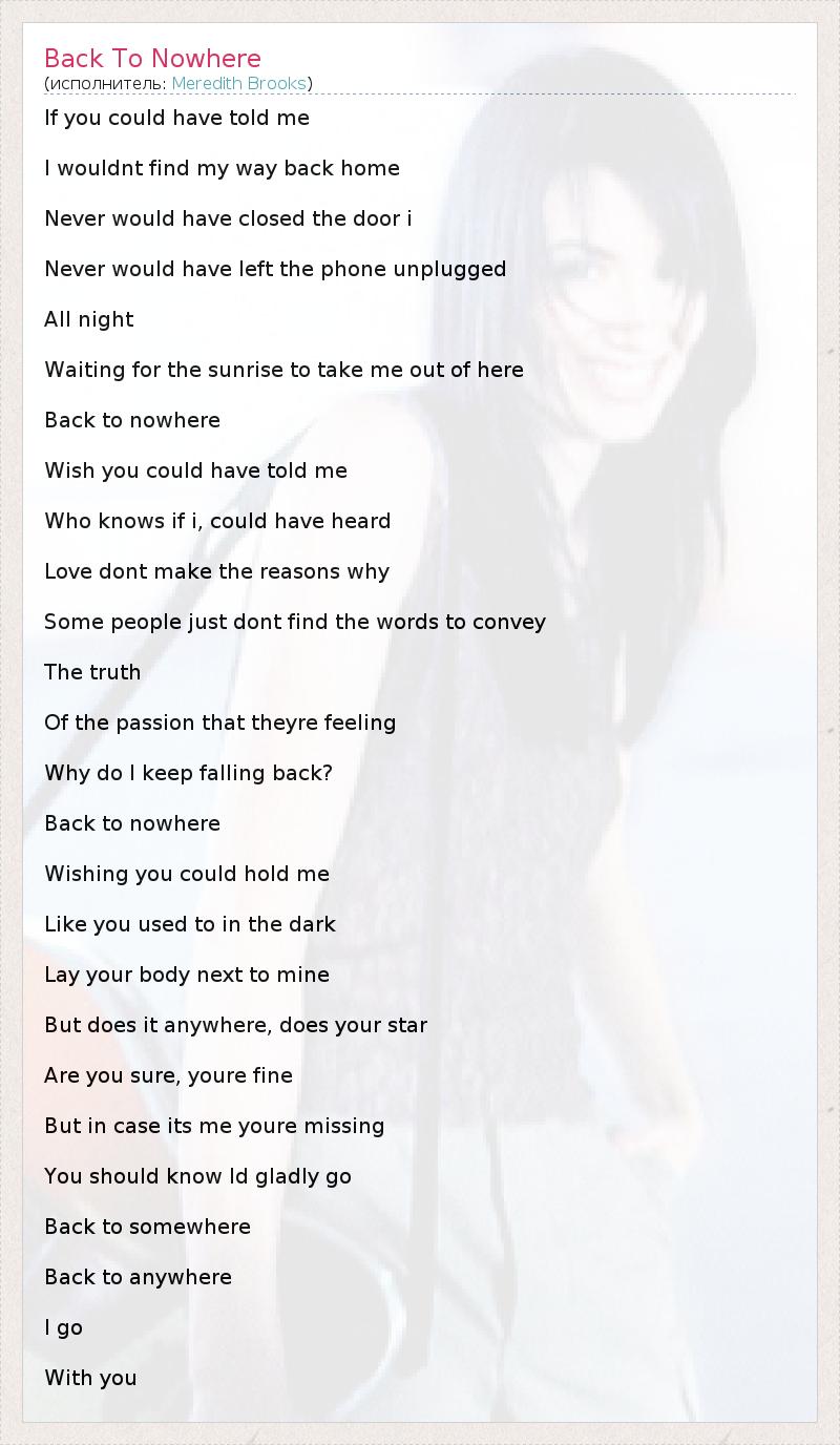 А как ты думаешь, о чем песня "Back To Nowhere" ?
