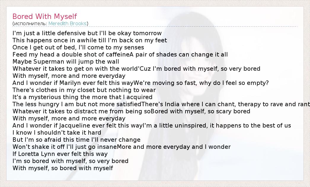 А как ты думаешь, о чем песня "Bored With Myself" ?