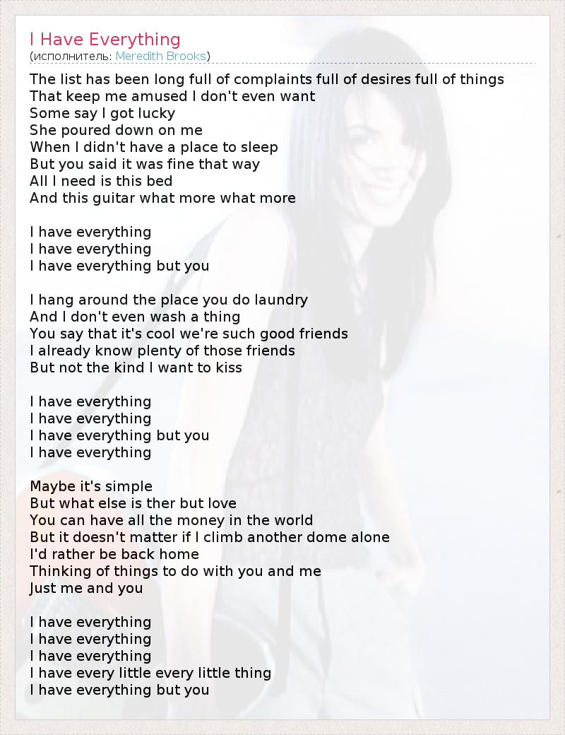 А как ты думаешь, о чем песня "I Have Everything" ?