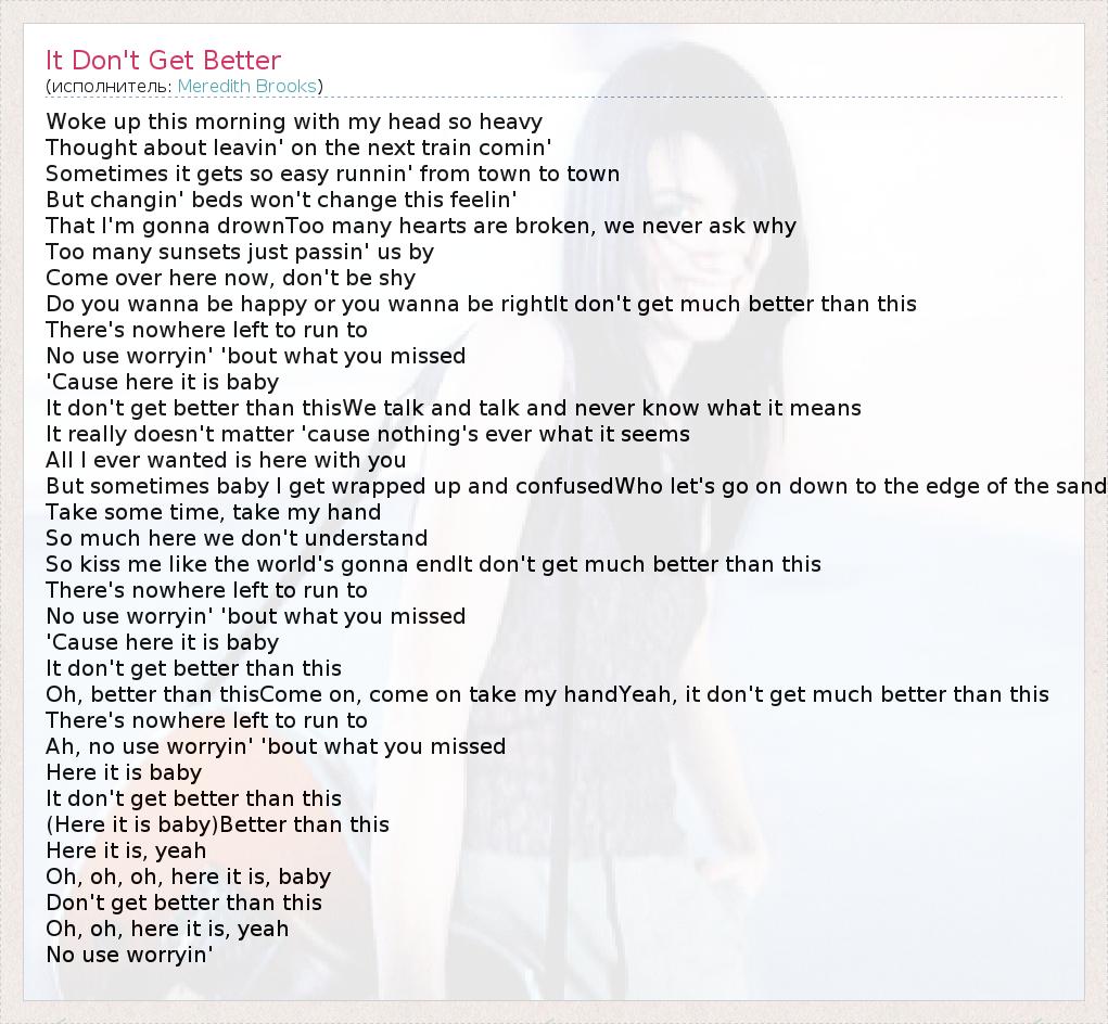 А как ты думаешь, о чем песня "It Don't Get Better" ?