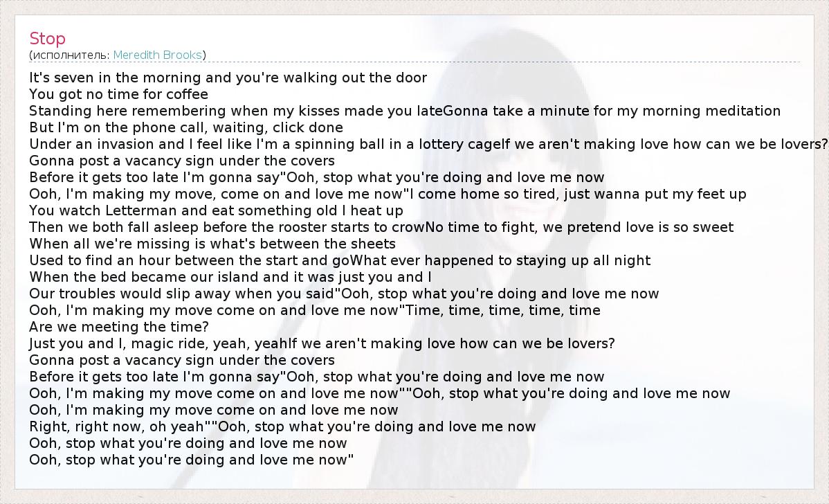 Right, right now, oh yeah""Ooh, stop what you're doing and love me now