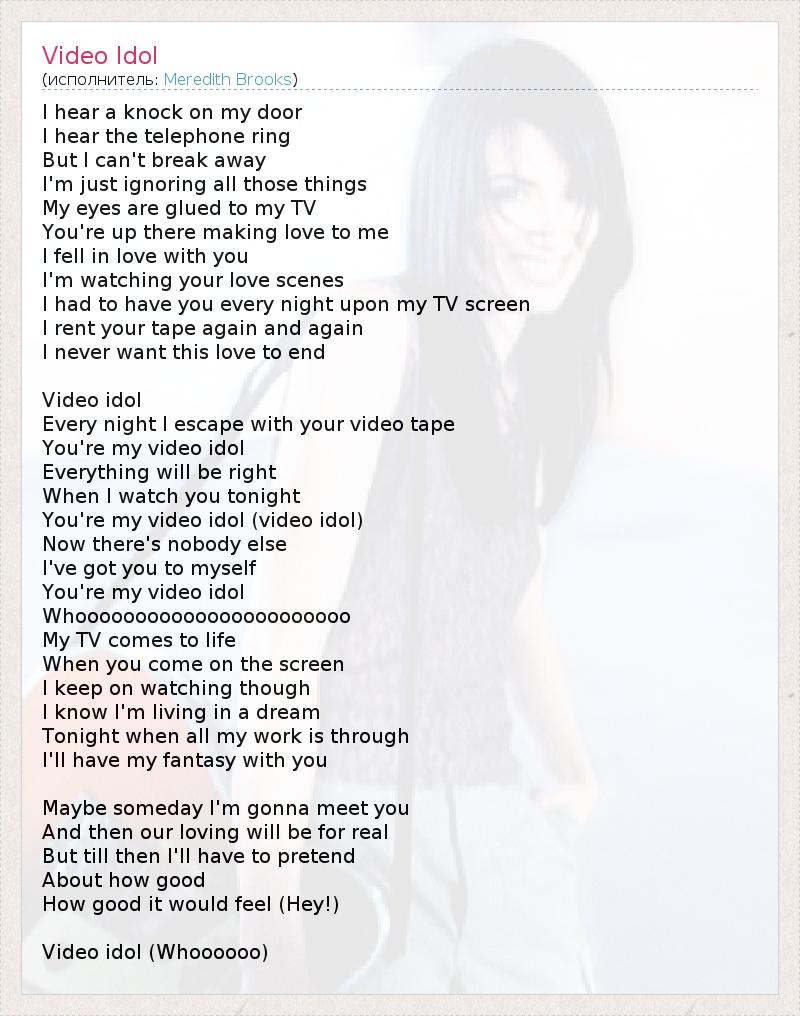 Это интересно:Мередит Брукс родилась в 1958 году в Орегон Сити, штат Орегон, США. После развода родителей вместе с матерью, братом и сестрой они переехали в Корвалис, штат Орегон. В одиннадцатилетнем возрасте Брукс увлеклась игрой на гитаре. Проявив успехи в учебе и сдав несколько классов экстерном она в 15 лет становится выпускницей Corvallis High School. В начале 1980х Брукс выступает в клубах Willamette Valley, Oregon и Washington,... продолжение