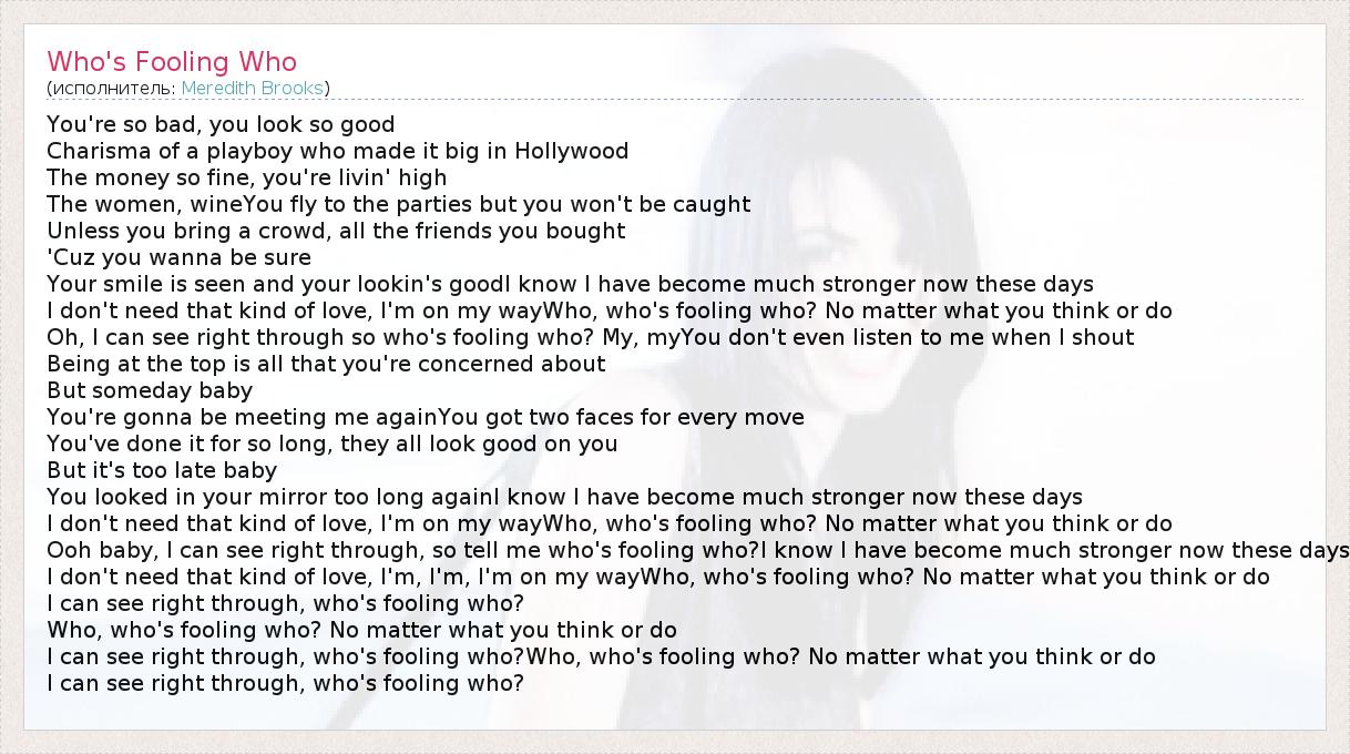 А как ты думаешь, о чем песня "Who's Fooling Who" ?