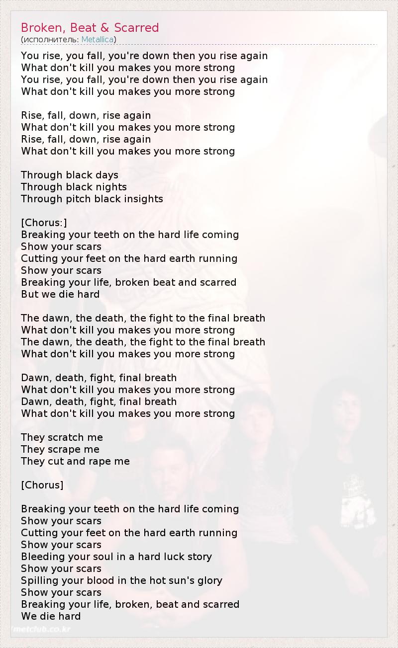 А как ты думаешь, о чем песня "Broken, Beat & Scarred" ?